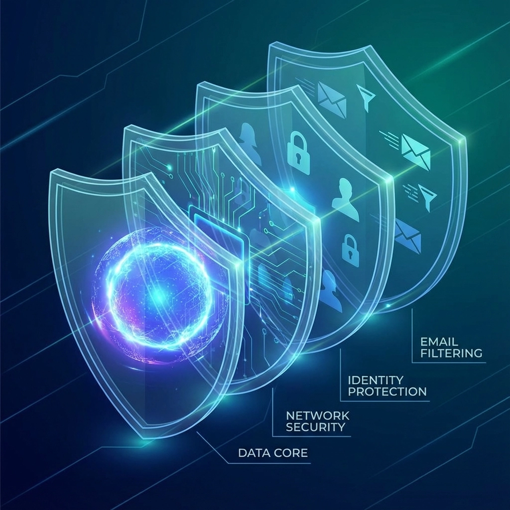 Effective cybersecurity today requires multiple layers of protection working together. This approach, often called "defense in depth," ensures that if one layer fails, others can still provide protection.